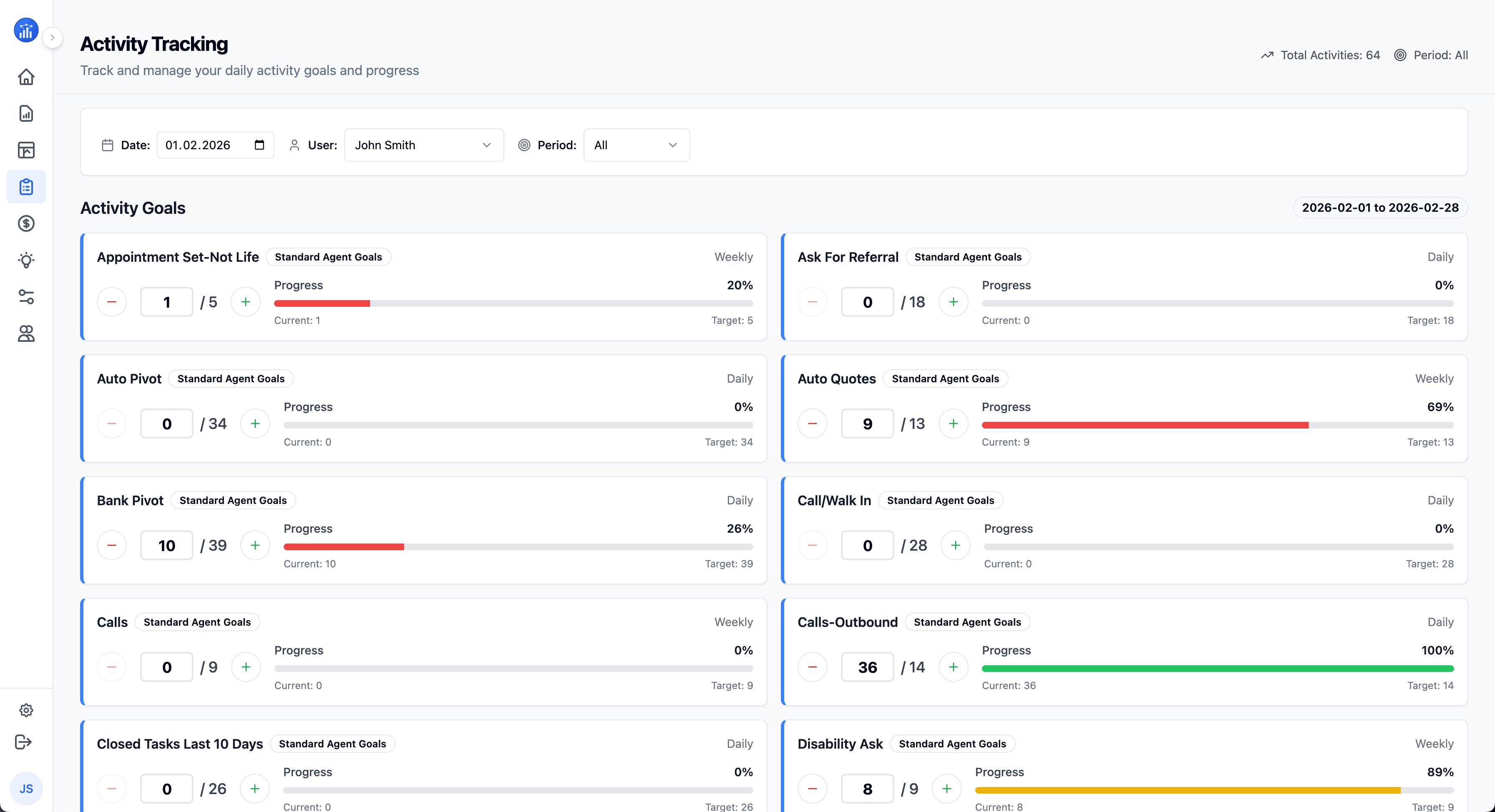 Log sales and activities in real-time. Track customer information, policy details, and interactions across multiple lines.